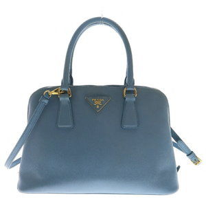 PRADA SAFFIANO LUX Leather Shoulder Bag Blue Good Condition, Includes a Certificate of Authentication