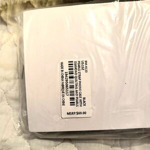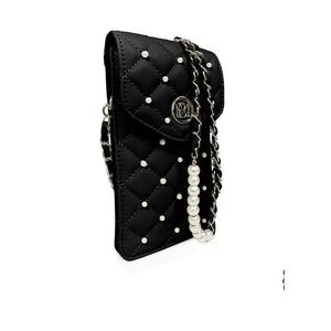 Elevate your cell phone game with this Badgley Mischka phone wallet. Not only is the bag studded with faux pearls, the strap has a grouping as well. The best part is you don't have to take your phone out to use it! Elegant and practical; win win.