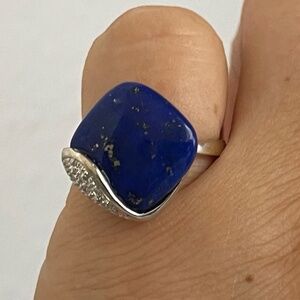 Echo of the Dreamer Blue flower, bee, white topaz ring. Sterling silver 925 Bronze