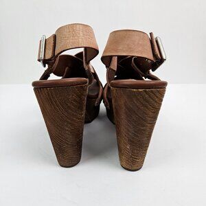 Kork-Ease Constance Braided Leather Wood Platform Heel Sandal Tan/Pink 9 K17316