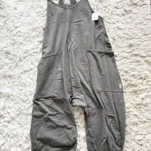 This soft and comfy onesie features a slouchy, relaxed-fitting design with a dropped crotch and convenient side pockets.