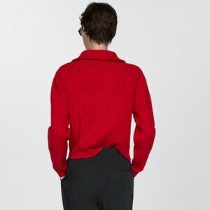 MANGO: Red Quarter Zip Sweater