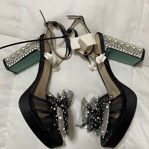 Step out in style with these elegant Betsy Johnson lulu heeled black and white sandals. Perfect for any occasion, these shoes feature a chic design with delicate pearl embellishments. Elevate your wardrobe with this sophisticated pair. Size 11. Retail $130. Brand new, no box. Would fit a size 10!