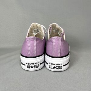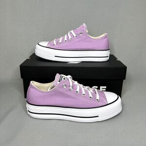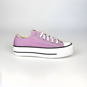 Women's Converse Chuck Taylor All-Star Lift Platform shoes available in sizes 6.5 to 7 US. These iconic sneakers come in a fun Purple Amethyst color, adding a vibrant splash to an Indi rock look. Designed with a textile upper and canvas fabric, they provide a breathable and cushioned experience, ensuring comfort throughout the day. The lace-up closure ensures a secure fit, while the flat rubber outsole offers durability and a sturdy grip on various surfaces. With a nod to classic style and modern elevation, these platforms feature a medium heel height and are ideal for a range of occasions, from casual outings to activewear to school and college gear. The Converse Chuck Taylor All Star line is known for its quality and timeless appeal, making these shoes a staple addition to your collection.