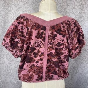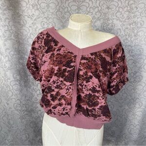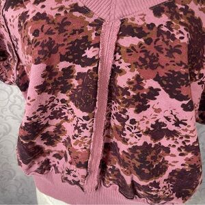Anthropologie Berry color short Sleeve Terry Sweasthirt V-Neck Floral print.