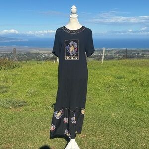 There’s a chunky gold chain with fabric woven around and the beads hang down