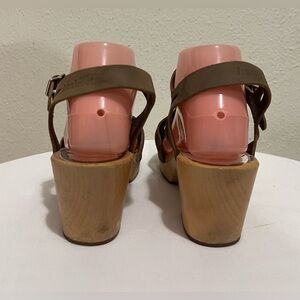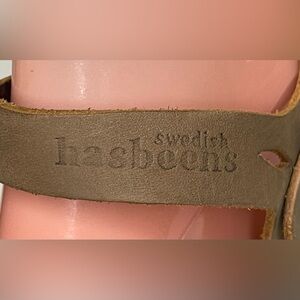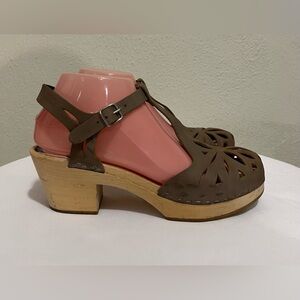 Swedish Hasbeens Wood Clogs Sandals Natural Tan Leather Buckle Shoes sz 40