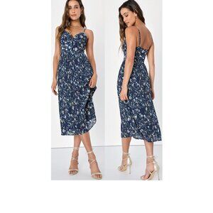Lulus halter or twist over design on a silhouette with a mesh bodice and structured boning.