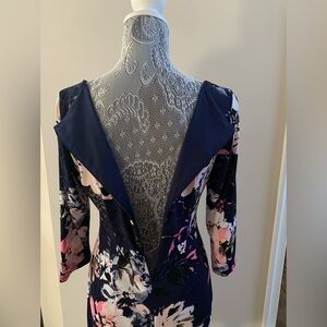 INC International Concepts Floral Shift Dress Small 3/4 Sleeve Back Zip Lined