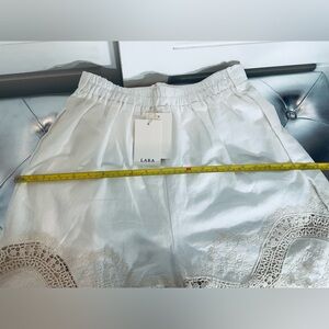 Elegant off white shorts featuring delicate lace trim. Perfect for a chic and comfortable look.