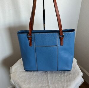 Dooney&Bourke Lexington zip top tote in Azul Blue. Needs very minor cleaning inside that I will do! Gorgeous blue color!! Smoke free home. Preowned nice Lexington.