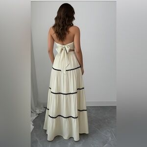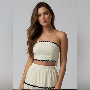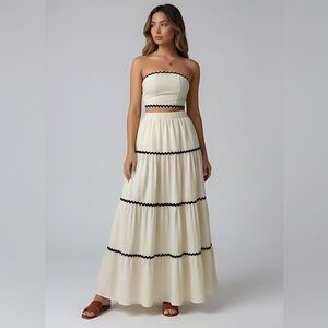 Boho Applique Cropped Bandeau Top And Skirt Set Beige