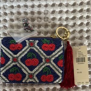Anthropologie CHERRIES Beaded Coin Purse: Lucky Icons Edition blue red Gift Card