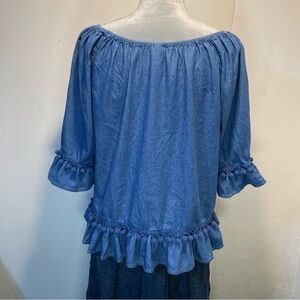 #0246 Hester & Orchard Denim Blue Ruffled Relaxed Blouse w/ Tassels-S