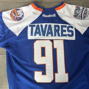 Blue and orange hockey jersey with white accents. Features a large logo on the front.