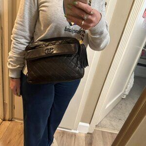 Chanel Vintage tassel camera bag with gold plated hardware in lambskin leather
