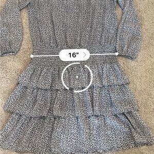 Stylish dark navy or black and white ruffle dress. Perfect for any occasion.