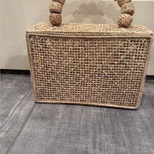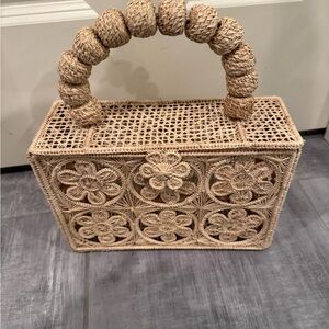 This gorgeous summer rattan clutch is for sale! It is the perfect rattan handbag you’ve been looking for… spacious and chic. It has a gorgeous floral pattern. Please look at the additional photos for dimensions.