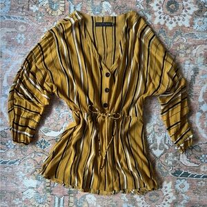Dolman sleeves with tunneled waist and adjustable tie. Wide v- neck with functioning buttons. Elastic at sleeve openings. Perfect as a beach coverup or a day dress. 100% Rayon. EUC . Worn once . Size S.
