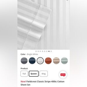 Fieldcrest Classic White Stipe 400ct Queen Cotton Sheet Set purchased in 2017 for guest bedroom. Downsized in 2020 & haven’t used since. Comes with fitted sheet, flat sheet, & 4 standard pillow cases. Minor marks on pillow cases from dryer (pictured as best as I could). Elegant white stripes & great quality. Smoke & pet free home.