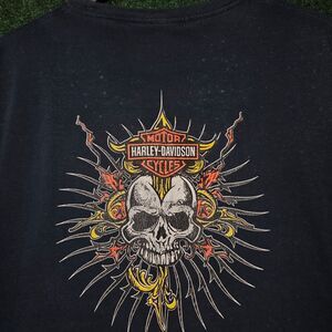 Keywords: harley davidson, skull tshirt, biker wear, motorcycle clothing, puerto progreso, yucatan, mexico, bar and shield, flames, tribal, graphic tee, collector, vintage style