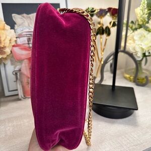 Elevate your style with this red cosmetic bag with chain.