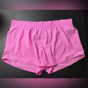 NWT All in Motion mid rise run shorts 3” in purple. Features continuous loop drawstring for adjustable fit, secure right side zipper pocket, waistband pocket, moisture wicking, quick dry, and reflective details.