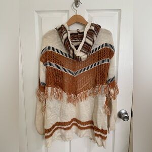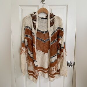 Blu Pepper cream and brown knit fringe hooded cardigan in excellent used condition.