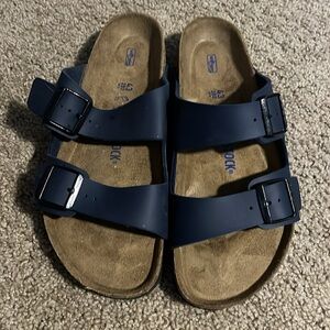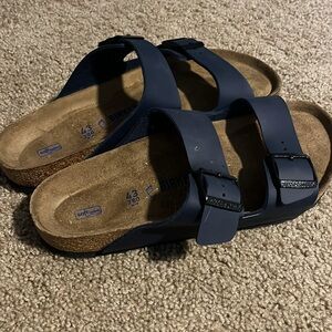 Birkenstock Arizona Birko Flor Navy Double-Strap Sandals, worn once indoors