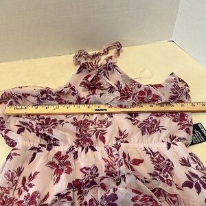 Express halter layered dress. Floral. Size L. Top Two bottom 40 inches long in front and 56 inches long and back. Description and measurements shown in photo.