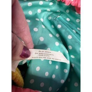 Brighten up your child's day with the Matilda Jane Pink Floral Backpack. This medium-sized backpack is perfect for Girls, offering a playful blend of cotton and polyester materials. The vibrant floral pattern, accented with charming tassels and pom-poms, adds a touch of whimsy to any casual outing. With adjustable shoulder straps and a convenient drawstring closure, it's designed for comfort and ease. The polka dot polyester lining adds a fun surprise inside. This pre-owned backpack is ready for new adventures.