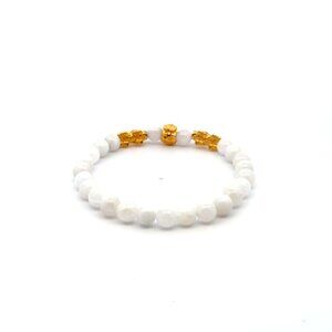 18K Gold Pixiu Double Piyao Money Bag Charm Bracelet Gemstone Moonstone 6mm