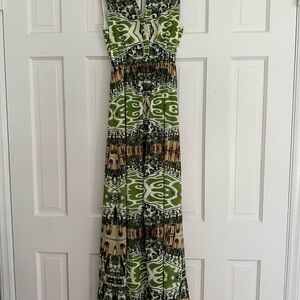 Elegant green patterned maxi dress perfect for any occasion. Features a stylish design that stands out. Comfortable and chic for all-day wear.