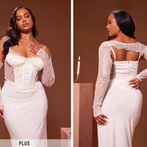 NWT French Style Mock Neck Bishop Sleeve Guipure Lace Cocktail Midi Dress
