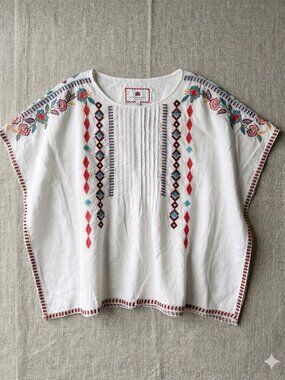 This easy dress features flutter sleeves, an open back closure, and hand-stitched detailing bordering the hem.