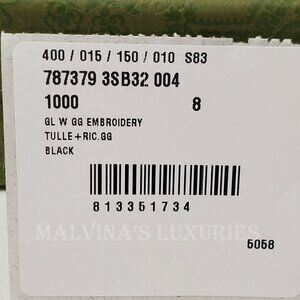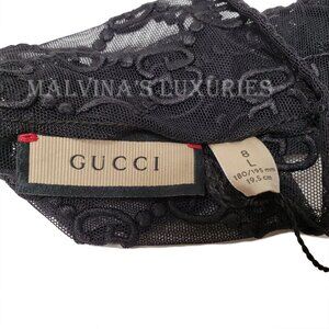 GUCCI GLOVES 787379 BLACK TULLE w GG LOGO MOTIF EMBROIDERY sz 8 / L
