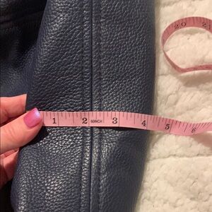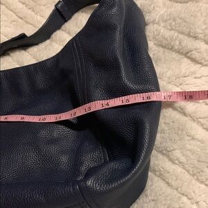 Stylish navy leather hobo bag with signature Michael Kors logo charm. Perfect for everyday use.