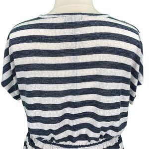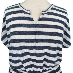 Lane Bryant Casual Blue and White Striped Split Neck Peplum Boho Knit Tunic Top