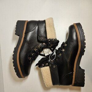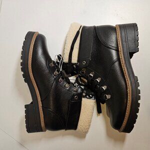 NWT Universal Thread Boots Womens 9.5 Karissa Black Lace Up Ankle Faux Sherpa