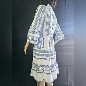 NWOT White and Blue Flounce Sleeve Tiered Dress Cover Up XS S