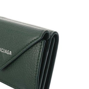 BALENCIAGA Paper Mini Wallet Green Leather Trifold