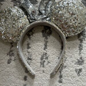 Sparkling silver sequin mouse ears headband. Perfect for adding a touch of magic to any outfit when heading to the Disney parks!