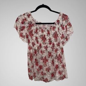 Lottie & Holly Ivory & Red Floral Boho Style Top Kimono