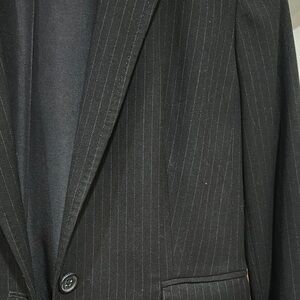 Elevate your style with this classic black pinstripe blazer. Perfect for any formal occasion.