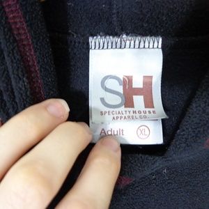 Warm fitted fleece w/ Colgate University printed on front left. Very soft, great for cold winters in upstate NY! Black w/ maroon detailed stitching along cuff, hem, hood. Like new except a small tear on front that is not noticeable when wearing (pictured). Specialty house apparel made for the University bookstore. No longer have fleece pullover hoodies