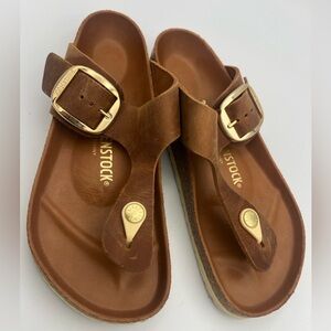 Birkenstock Gizeh Womens Size 8 Cognac Leather Big Buckle Sandals EU 39 NEW
