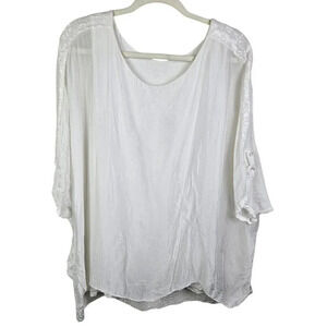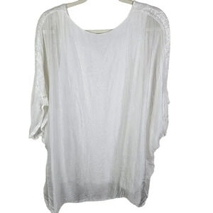 M for Bolide White Silk Blouse Tunic 3/4 Sleeve Scoop Neck Sequin Size Large