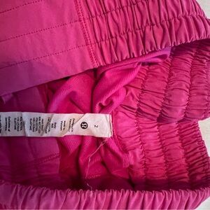 Vibrant pink athletic shorts. Elastic waistband. Perfect for workouts.