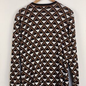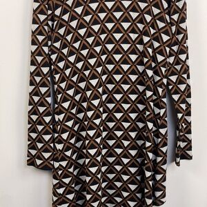 Belle By Belldini open front geometric triangle cardigan sweater in brown and white