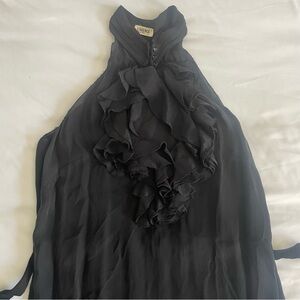 High, ruffled neckline
